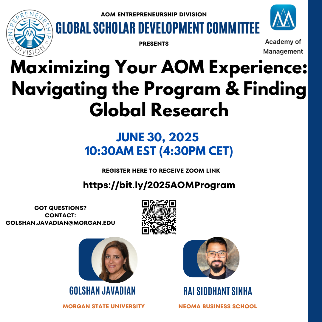 Join us for a dynamic session by AOM ENT Division's Global Scholar Development Committee designed to help you navigate the AOM program.