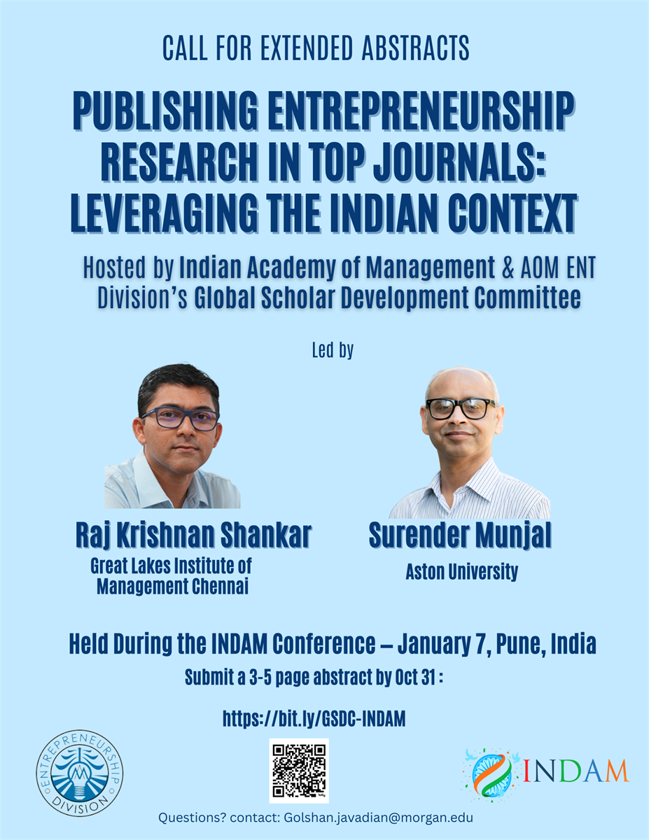 Proudly hosted by the INDAM - Indian Academy of Management & the AOM ENT Division's Global Scholar Development Committee.